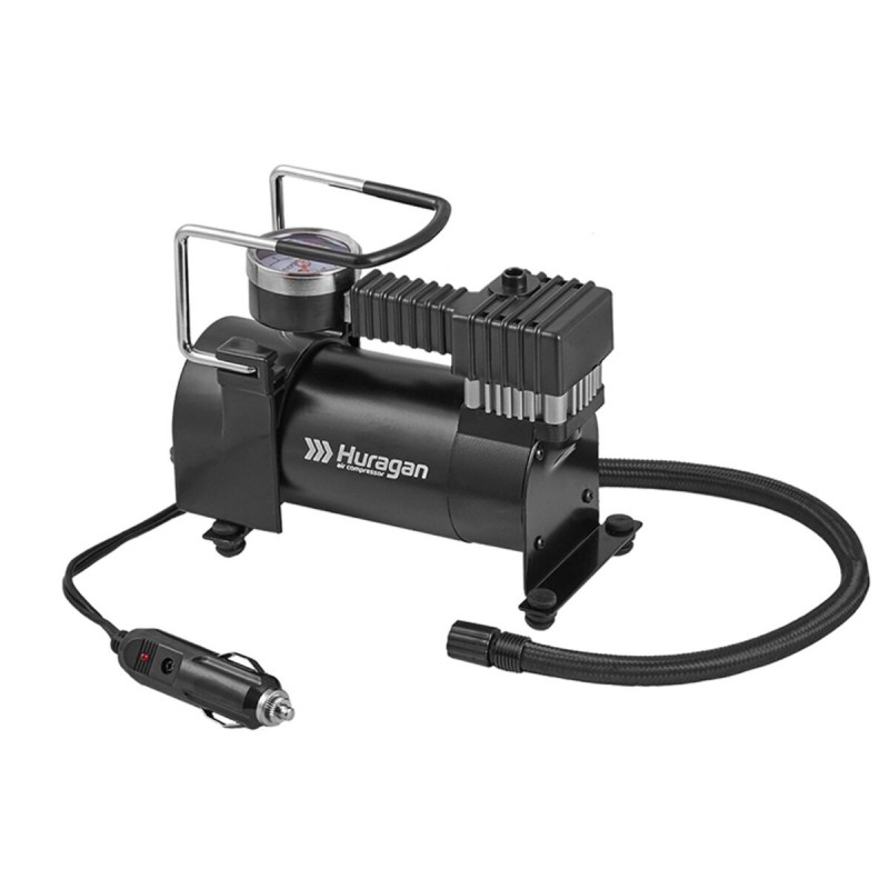 Для автолюбителя, важлива зручна і безпечна експлуатація автомобіля. З різних причин тиск в автомобільних шинах стає менше нормального рівня. Іноді, навіть покупка дорогої і якісної гуми не страхує від проколу шини, або від факту, що рано, чи пізно стиснене повітря може почати проникати через стінки покришки. Кожен автомобіліст повинен знати як впоратись з цим головним болем. Тому автомобільний компресор Huragan - є невід'ємною річчю в транспортному засобі. Саме він допоможе уникнути випадкового пробиття, або спущеного колеса.У комплекті також йде кабель живлення 3м, а міцний шланг, дозволить доставляти прилад до кожного колеса.
