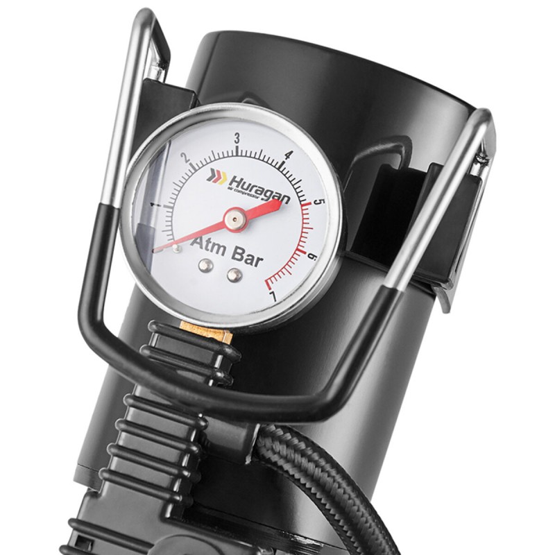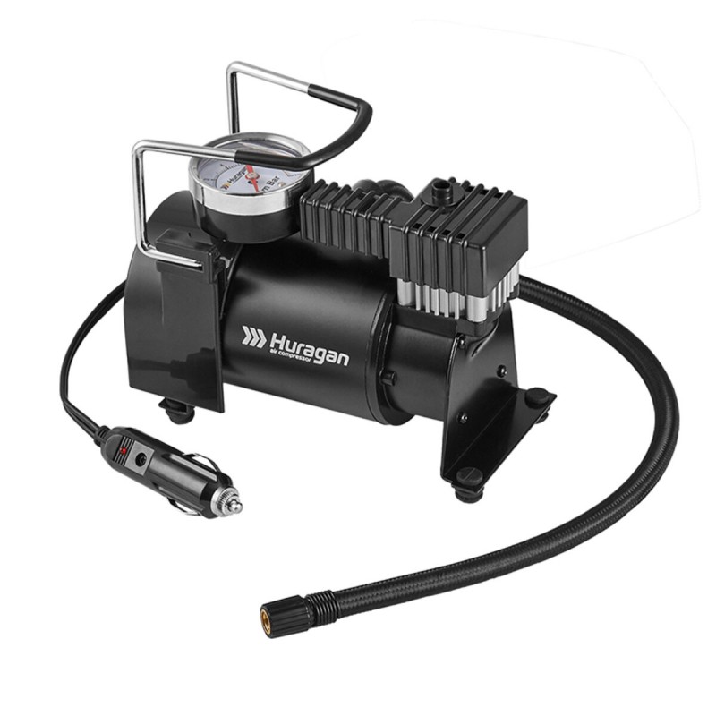 Для автолюбителя, важлива зручна і безпечна експлуатація автомобіля. З різних причин тиск в автомобільних шинах стає менше нормального рівня. Іноді, навіть покупка дорогої і якісної гуми не страхує від проколу шини, або від факту, що рано, чи пізно стиснене повітря може почати проникати через стінки покришки. Кожен автомобіліст повинен знати як впоратись з цим головним болем. Тому автомобільний компресор Huragan - є невід'ємною річчю в транспортному засобі. Саме він допоможе уникнути випадкового пробиття, або спущеного колеса.У комплекті також йде кабель живлення 3м, а міцний шланг, дозволить доставляти прилад до кожного колеса.