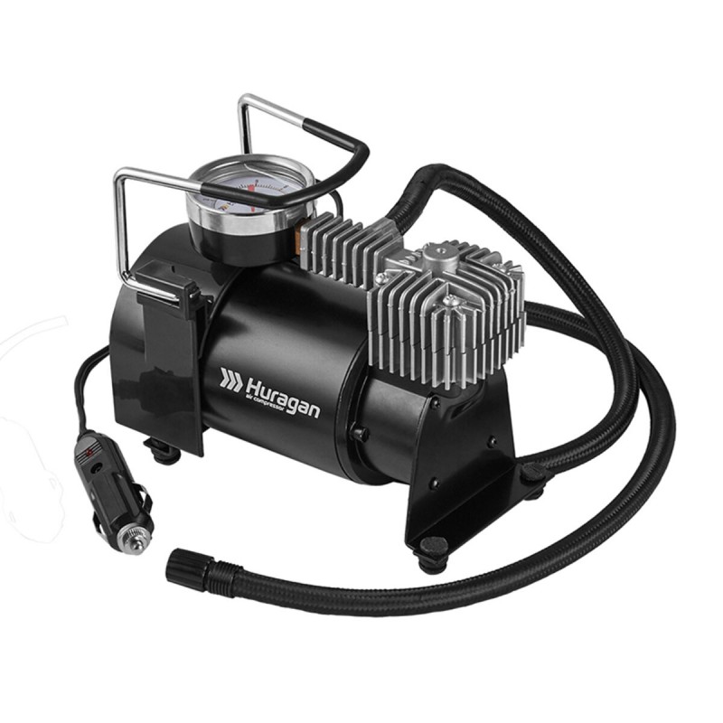 Для автолюбителя, важлива зручна і безпечна експлуатація автомобіля. З різних причин тиск в автомобільних шинах стає менше нормального рівня. Іноді, навіть покупка дорогої і якісної гуми не страхує від проколу шини, або від факту, що рано, чи пізно стиснене повітря може почати проникати через стінки покришки. Кожен автомобіліст повинен знати як впоратись з цим головним болем. Тому автомобільний компресор Huragan - є невід'ємною річчю в транспортному засобі. Саме він допоможе уникнути випадкового пробиття, або спущеного колеса.У комплекті також йде кабель живлення 3м, а міцний шланг, дозволить доставляти прилад до кожного колеса.
