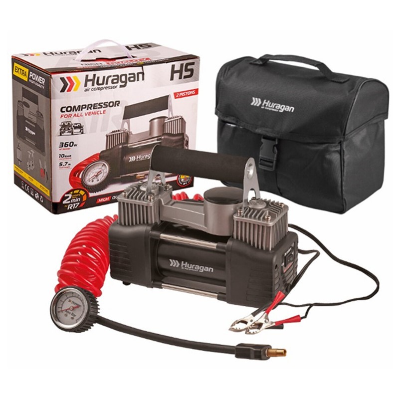 Для автолюбителя, важлива зручна і безпечна експлуатація автомобіля. З різних причин тиск в автомобільних шинах стає менше нормального рівня. Іноді, навіть покупка дорогої і якісної гуми не страхує від проколу шини, або від факту, що рано, чи пізно стиснене повітря може почати проникати через стінки покришки. Кожен автомобіліст повинен знати як впоратись з цим головним болем. Тому автомобільний компресор Huragan - є невід'ємною річчю в транспортному засобі. Саме він допоможе уникнути випадкового пробиття, або спущеного колеса.У комплекті також йде кабель живлення 3м, а міцний шланг, дозволить доставляти прилад до кожного колеса.