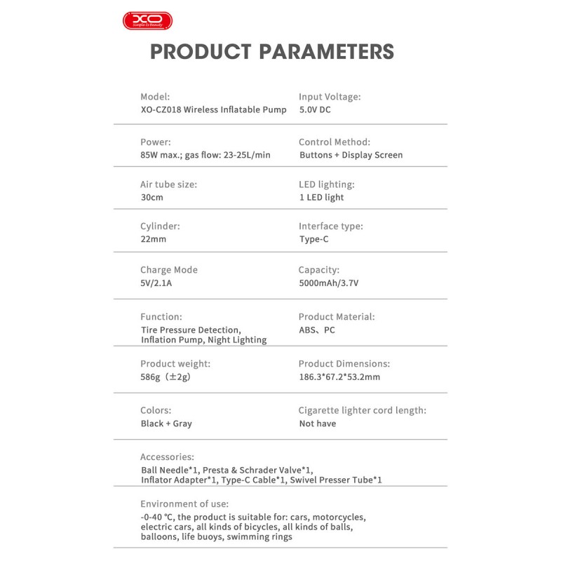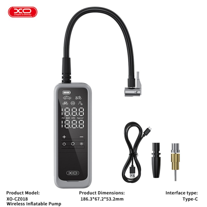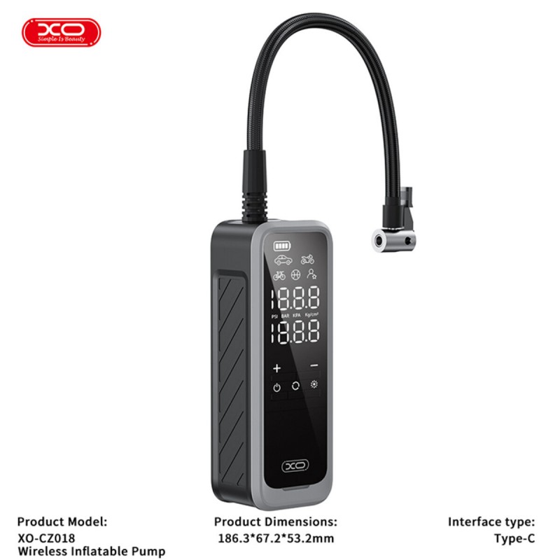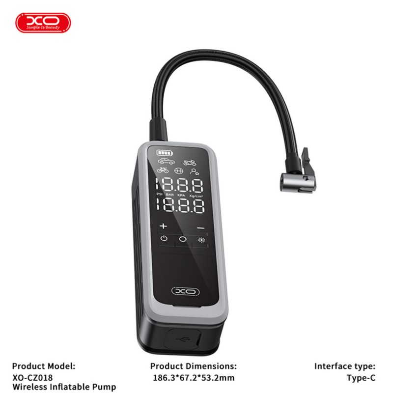 XO CZ018 — бездротовий автокомпресор, незамінний помічник для швидкого та надійного накачування в будь-яких умовах. Завдяки потужному двигуну він дозволяє швидко надувати шини, м’ячі та інші вироби, заощаджуючи твій час і зусилля.