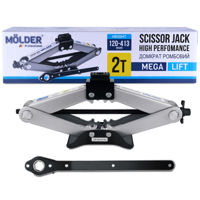 Домкрат ромбовий Molder 2т 120-413мм гумова подушка, з трещіткою