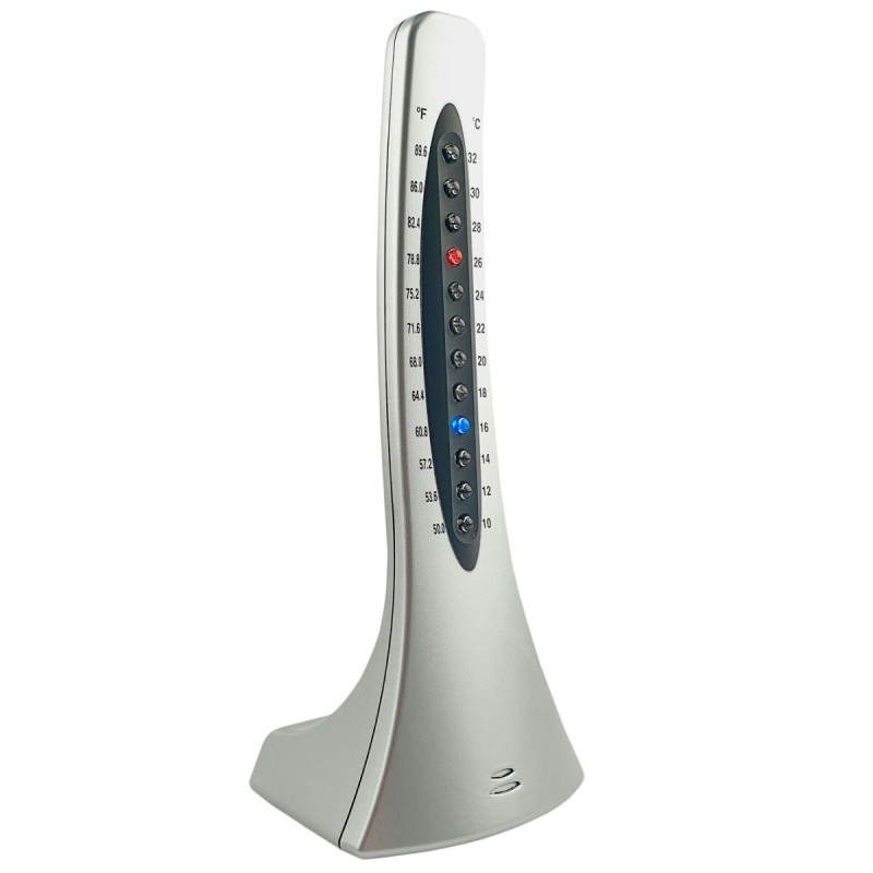 Незвичайний термометр KONUSLED має дизайн у стилі хай-тек: футуристичний вигляд та світлодіодні індикатори неодмінно привернуть увагу гостей вашого будинку чи відвідувачів офісу. Крім відображення температури (C°/F°), ця модель оснащена 5 режимами миготіння лампочок, що перетворює термометр на цікавий девайс.