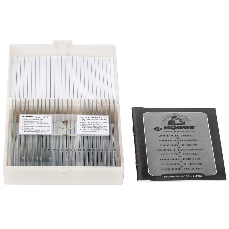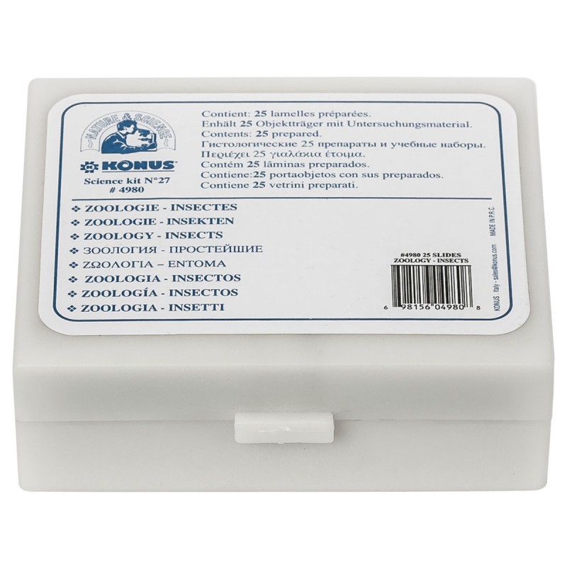 Набір мікропрепаратів з 7 комплектів від Konus, які забезпечують всебічне введення до чудес зоології. Мікропрепарати дозволять детально вивчити структуру найпростіших одноклітинних організмів, безхребетних та хребетних тварин. У наборах представлені зразки рептилій, птахів та ссавців. Також розглянуто такі важливі теми, як паразити тварин та розмноження тварин, що дає школярам та студентам можливість отримати цікавий та багатогранний досвід навчання.