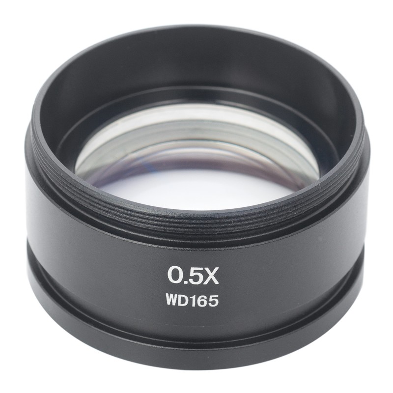 Допоміжний об'єктив "половинного збільшення", призначений для підвищення робочої відстані мікроскопа (зрозуміло, на шкоду кратності). Діаметр металевої оправи з різьбою по верхньому контурі - 48 мм.