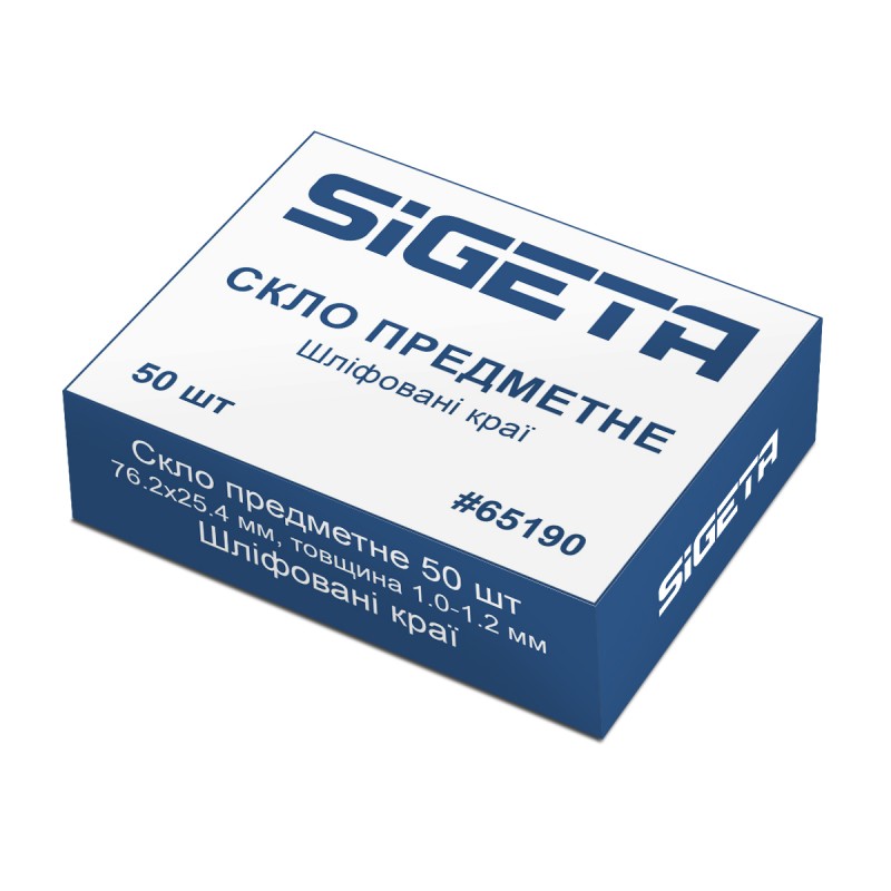 Предметне скло SIGETA зі шліфованими краями – це набір із 50-ти тонких та абсолютно прозорих скляних пластин, призначених для розміщення мікропрепаратів під час мікроскопічних досліджень.