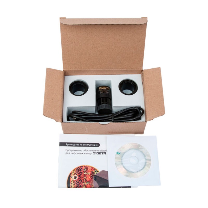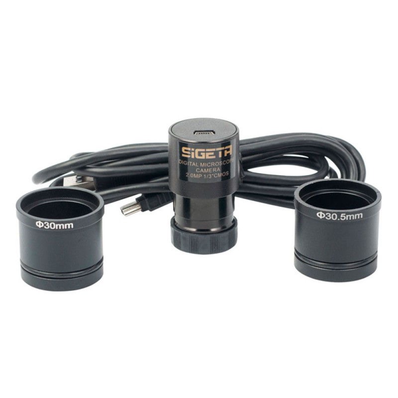 SIGETA MDC-200 2.0MP - компактна цифрова камера для запису результатів мікроскопічних досліджень на фото та відео. Може встановлюватися в тубус моно/бінокулярного мікроскопа або окремий (3-й) оптичний порт. CMOS-сенсор камери діагоналлю близько третини відіконівського дюйма (≈6.1 мм) захищений інфрачервоним фільтром, який покращує передачу кольору та підвищує чутливість матриці при нестачі освітлення.