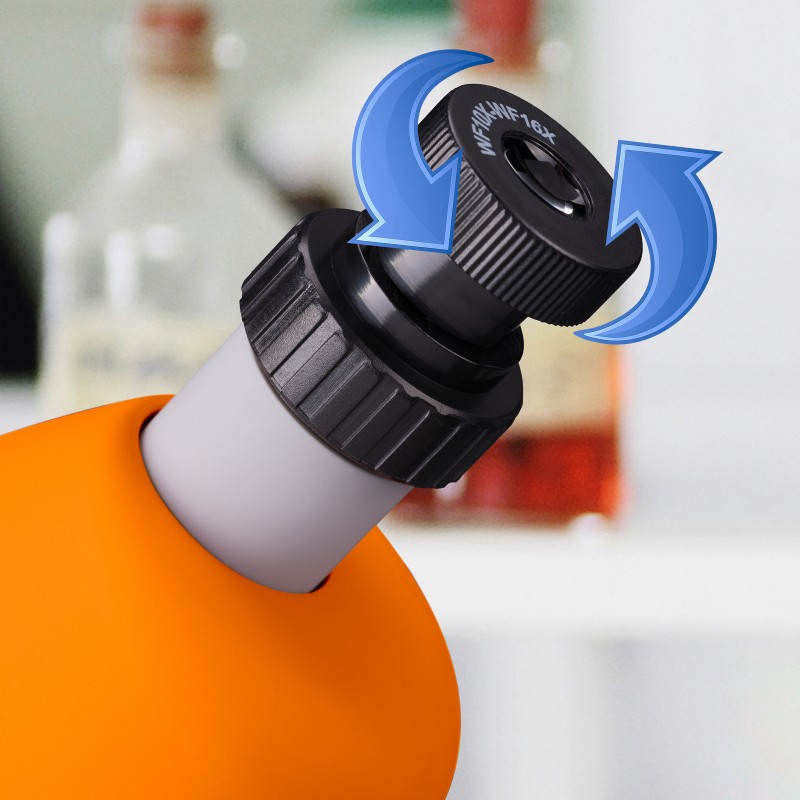 Збільшення мікроскопа формується трьома об'єктивами, зум-окуляром і сягає 640 крат. Рекомендується почати спостереження з об'єктива мінімальної кратності, встановивши зум-окуляр на мінімальну кратність. таким чином буде досягнуто кращої якості зображення. При необхідності - міняйте об'єктиви та положення зум-окуляра, домагаючись більшого збільшення.