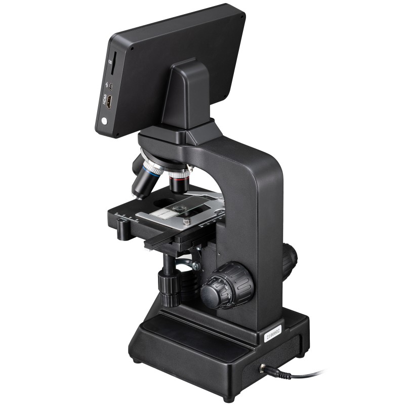 Bresser Researcher LCD — це цифровий мікроскоп з інтегрованим 7-дюймовим сенсорним екраном, призначений для хобі, навчання у школі та професійного використання в лабораторних умовах. Завдяки камері Sony IMX206 з роздільною здатністю 16 мегапікселів прилад дозволяє детально спостерігати мікроорганізми, зокрема мікроводорості, джгутикові та бактерії. Ключовою особливістю моделі є великий контрастний дисплей із природною передачею кольорів, що дає змогу працювати без окуляра та ділитися зображенням з аудиторією. Вбудований HDMI-вихід забезпечує трансляцію зображення у форматі Full-HD на монітор, телевізор або проектор, що робить мікроскоп ідеальним інструментом для групових занять і презентацій. Чотири ахроматичні об'єктиви стандарту DIN у поєднанні з конденсором Аббе та ірисовою діафрагмою гарантують чітке, рівномірно освітлене зображення на будь-якому рівні збільшення.