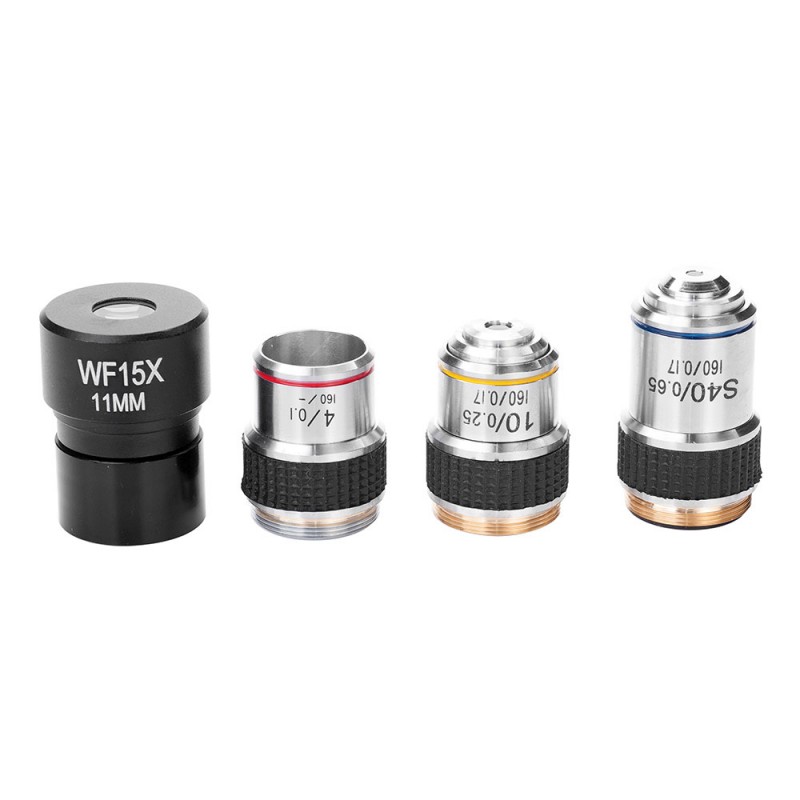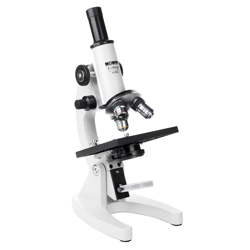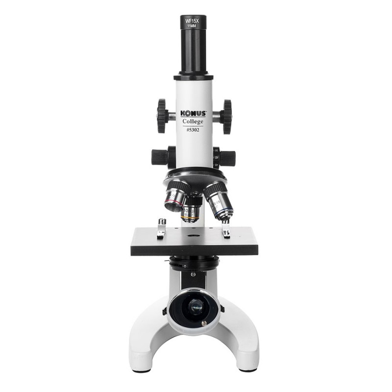 Біологічний мікроскоп KONUS College 60х-600х призначений для оснащення шкільних кабінетів біології, лабораторій університетів і професійних коледжів. Комплектація моделі включає в себе 15-кратний окуляр і 3 ахроматичні об'єктиви кратністю 4, 10 і 40х (останній — з пружинною оправою для запобігання зіткнення зі зразком при фокусуванні). Таким чином, в базовій комплектації мікроскоп здатний працювати при збільшеннях 60, 150 або 600х.
