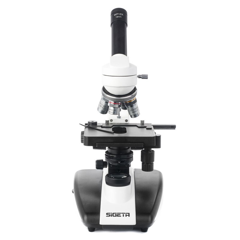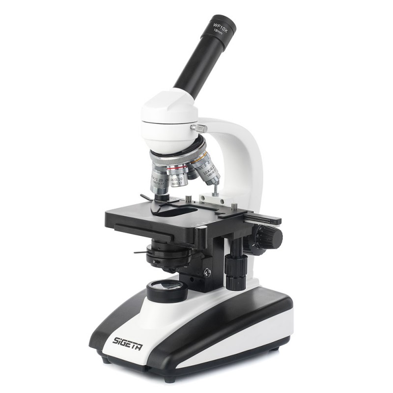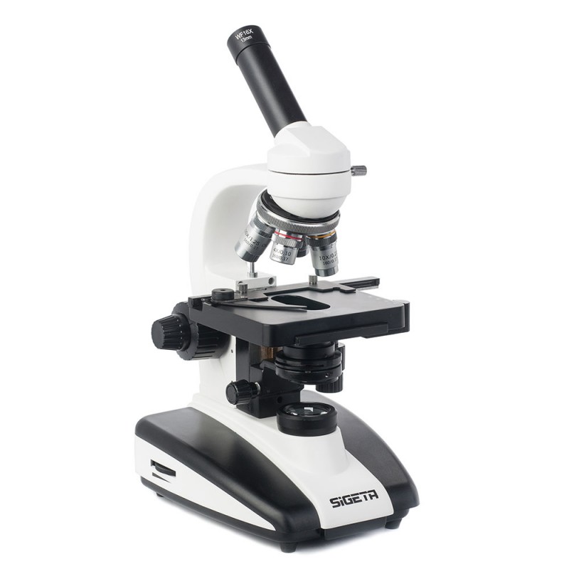 SIGETA MB-103 40x-1600x LED Mono — лабораторний монокулярний мікроскоп з ахроматичною оптикою для дослідження біологічних препаратів в прохідному світлі. Призначений для обладнання навчальних, медичних і наукових установ будь-якого рівня; генерує високоякісне зображення на малих (від 40х) і великих (до 1600х) збільшеннях.