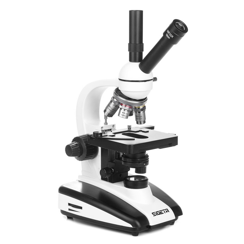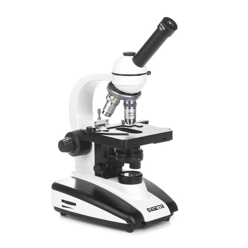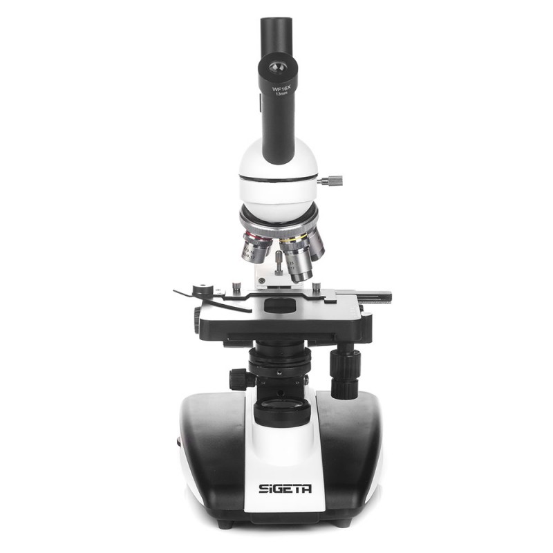 SIGETA MB-401 Dual-View — професійний монокулярний мікроскоп з додатковою насадкою для цифрової камери-окуляра. Призначений для дослідження прозорих біологічних препаратів при прохідному світлі. Оснащений ширококутними окулярами 10х, 16х і ахроматичними об'єктивами потужністю 4х, 10х, 40х та 100х.