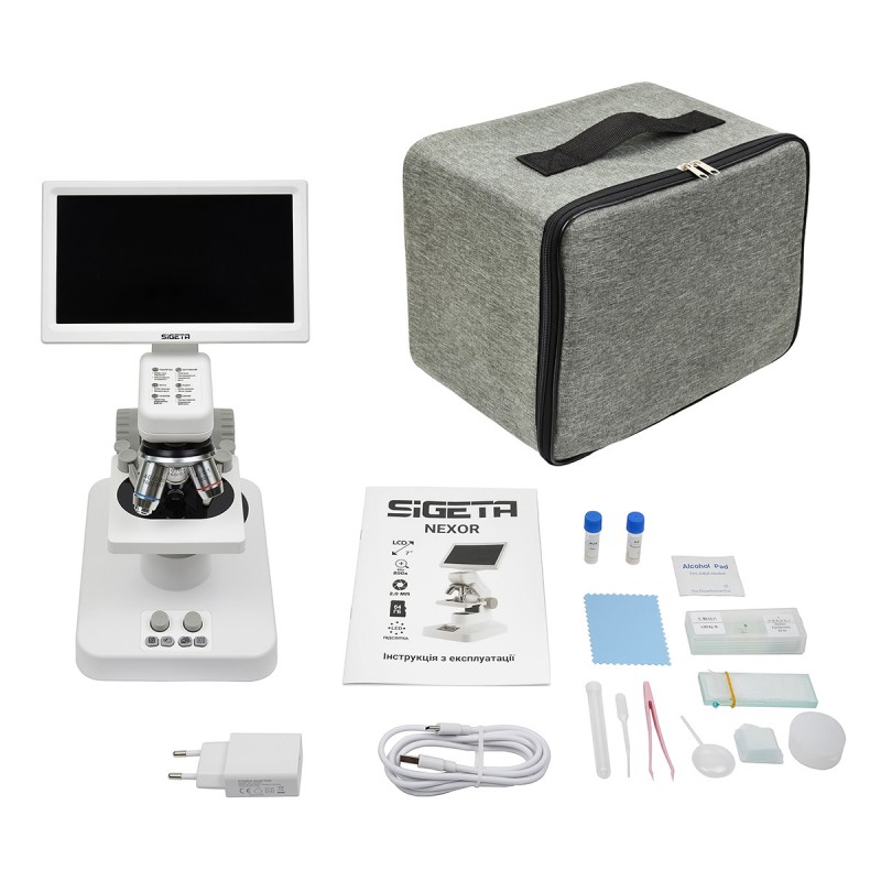 Сучасний цифровий мікроскоп SIGETA NEXOR із широким діапазоном збільшенням від 80x до 800x оснащений великим 7-дюймовим LCD-екраном з технологією IPS, подвійною LED-підсвіткою з регулюванням яскравості, портом USB Type-C та модулем Wi-Fi для підключення до ПК або смартфона. Присутність українського інтерфейсу значно підвищує зручність користування.