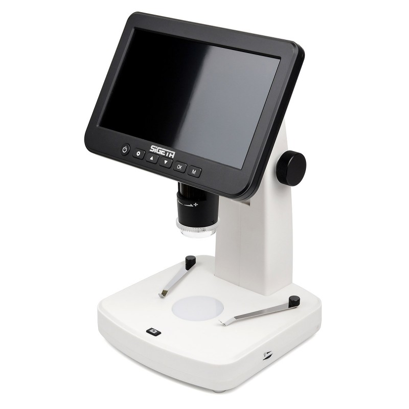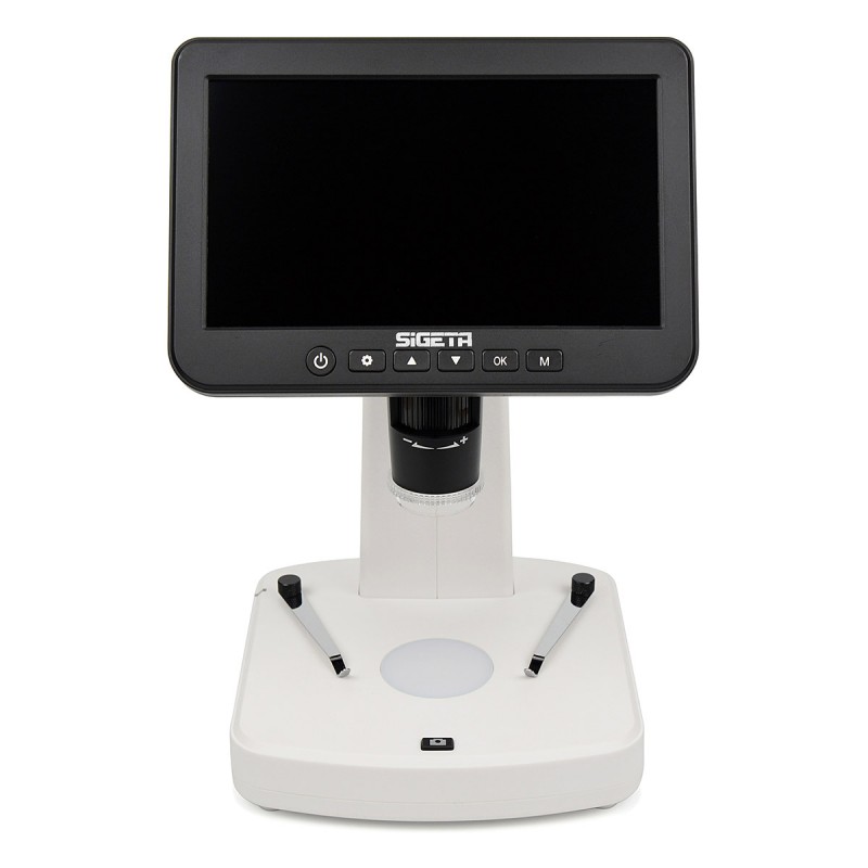SIGETA Numeric Pro — стильна новинка, покращена версія цифрового мікроскопа Numeric від бренду SIGETA. Цей зручний настільний прилад оснащений великим 7-дюймовим рідкокристалічним IPS-екраном, вбудованим поворотним поляризаційним фільтром, подвійною LED-підсвіткою та інтерфейсами для виведення зображення на зовнішній екран.