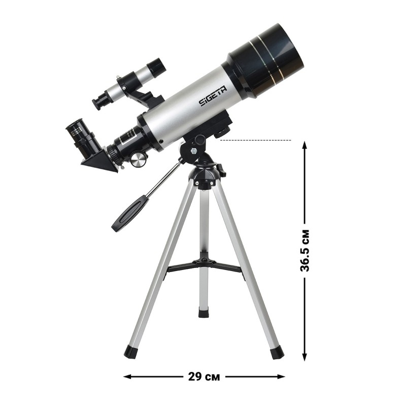 SIGETA Volans II 70/400 AZ — оновлена версія популярного телескопа, що тепер доповнена адаптером для смартфона, а також картами Місяця і планет Сонячної системи. Це легкий і компактний ахроматичний рефрактор початкового рівня, спеціально створений для дітей. Ідеально підходить на роль першого телескопа або підзорної труби. Водночас дана модель може зацікавити й дорослих користувачів, які шукають простий у використанні інструмент для виїзних астрономічних або наземних спостережень. Телескоп постачається в яскравій, барвистій коробці, яка робить його чудовим варіантом для подарунка.
