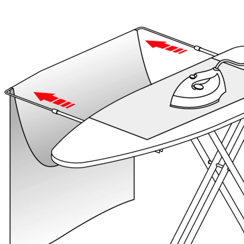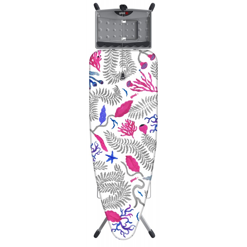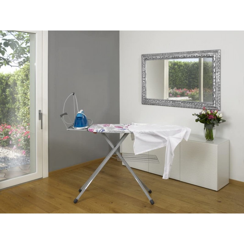 Прасувальна поверхня дошки має наскрізну перфорацію на кшталт сітки. Завдяки такій конструкції, пара з-під праски проходить крізь саму дошку, тим самим запобігає накопиченню конденсату під чохлом. Чохол виконаний зі 100% натуральної бавовни з мольтоновою підкладкою. Закруглене закінчення дошки дозволяє вигладити важкодоступні місця в сорочках або блузах. Чохол знімний, у міру використання його завжди можна випрати або замінити на новий. Прасувальна дошка, плавно і без особливих зусиль регулюється по висоті для максимально комфортного використання. На ніжки одягнені ковпачки, що оберігають дошку від ковзання.