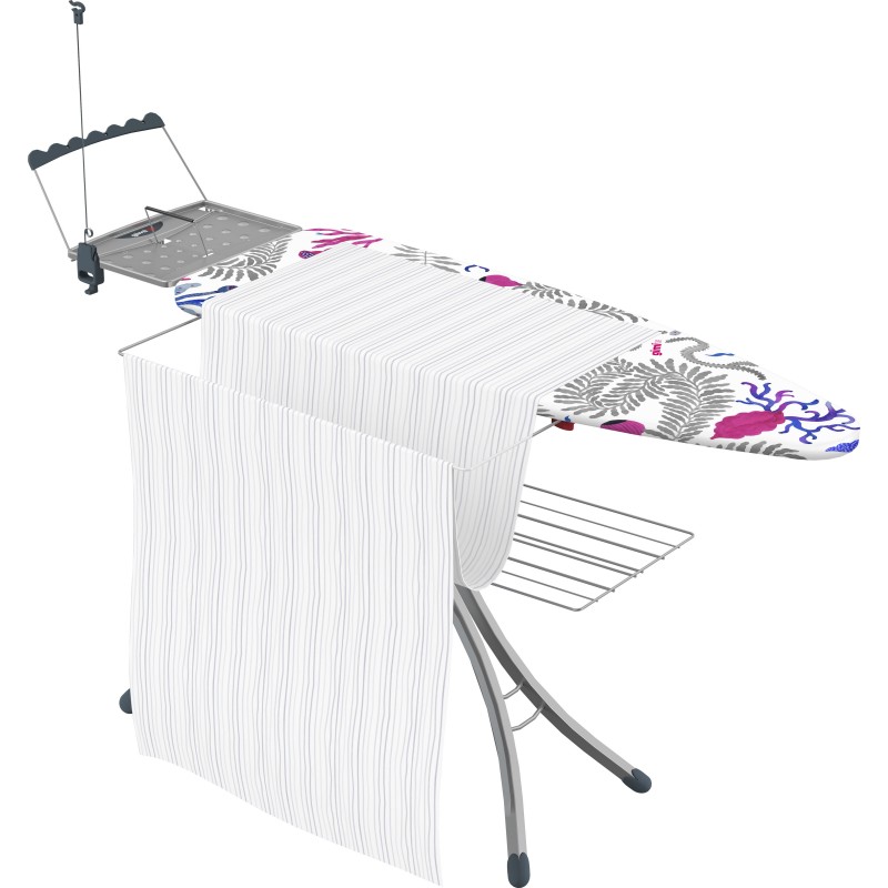 | Особливості | Підставка для парогенератора Тримач проводу Регулювання за висотою Полиця для білизни Підставка для праски Основа з металевою сіткою |
