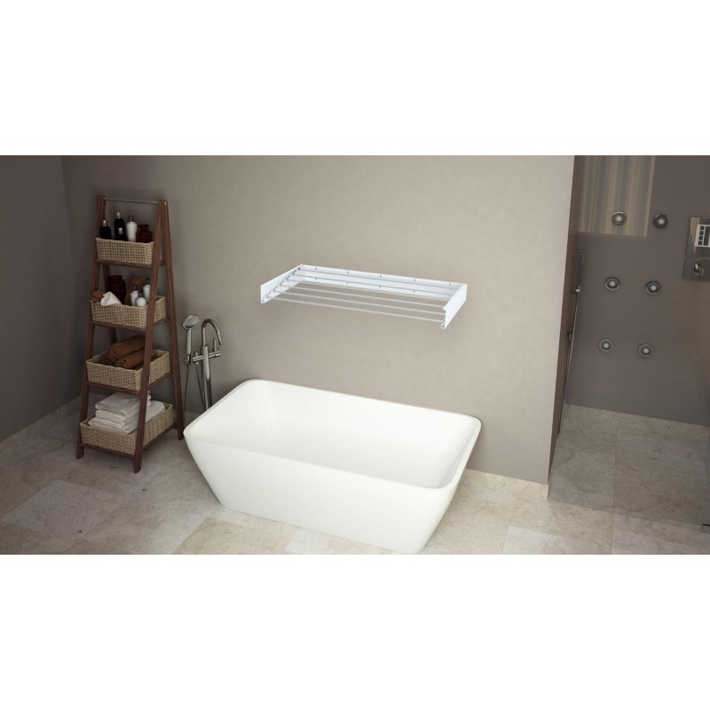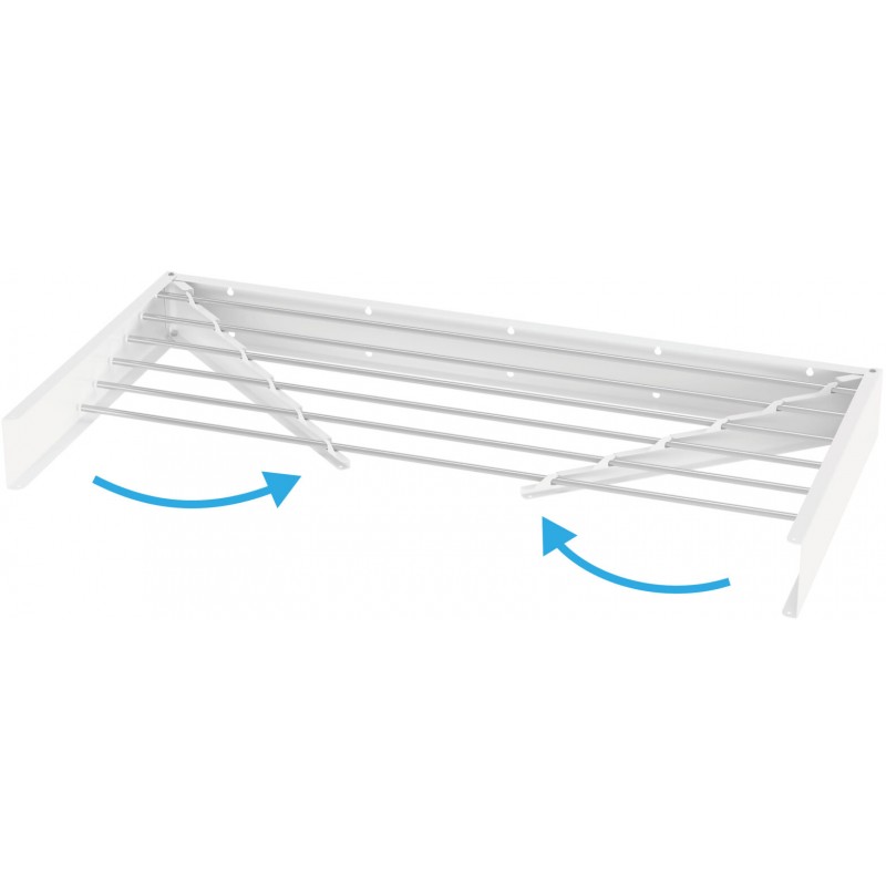 Сушарка складається «книжкою» або панеллю до стіни. Коли вона закрита, ви бачите лише охайну тонку планку. Ця модель сушарки пропонує близько 6 метрів корисної площі для розвішування .У закритому стані її товщина мінімальна, що дозволяє встановлювати її навіть за дверима або у вузьких душових зонах.