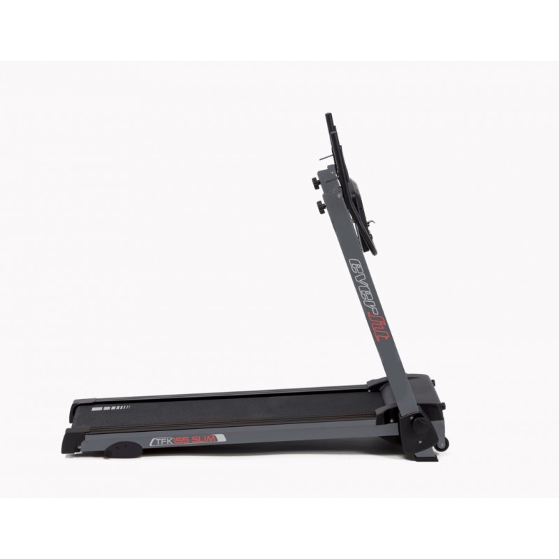 Бігова доріжка Everfit TFK 155 Slim — це компактна електрична бігова доріжка для домашніх кардіотренувань, що поєднує зручність експлуатації з широкими тренувальними можливостями. Оснащена потужним DC двигуном 1,75 HP (2,75 HP пікова потужність), вона розвиває швидкість від 0,8 до 14 км/год з кроком 0,1 км/год — достатньо як для бігу, так і для енергійної ходьби. Консоль з LCD дисплеєм і підсвіткою показує основні параметри тренування — швидкість, час, дистанцію, калорії та пульс (датчики серцебиття вбудовані в поручні). Доступні 12 попередньо встановлених програм, 1 ручний режим і тест на рівень жирової маси. Конструкція з транспортувальними колесами та можливістю складання робить цю бігову доріжку дуже зручною для квартир, де важлива економія простору — після тренування її можна легко скласти і прибрати.