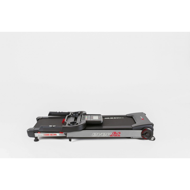 Бігова доріжка Everfit TFK 495 SLIM — це ультракомпактна та функціональна бігова доріжка для дому, що поєднує потужний безщітковий мотор, просторе полотно для бігу та інтеграцію з тренувальними додатками. Модель орієнтована на користувачів, які шукають компактність у поєднанні з реальними можливостями тренажера — зручне складання/розкладання, транспортування в двох напрямках і підтримка Zwift/Kinomap роблять її особливо привабливою.
