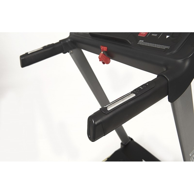 Бігова доріжка легко піднімається у вертикальне положення, економлячи місце, завдяки вбудованому газовому амортизатору та системі фіксації;