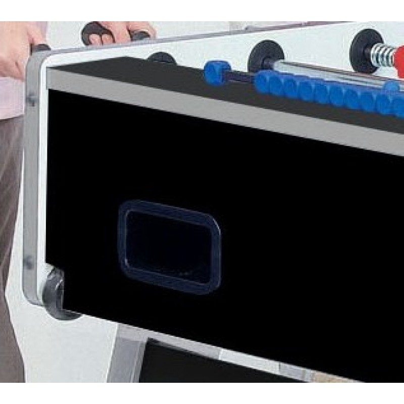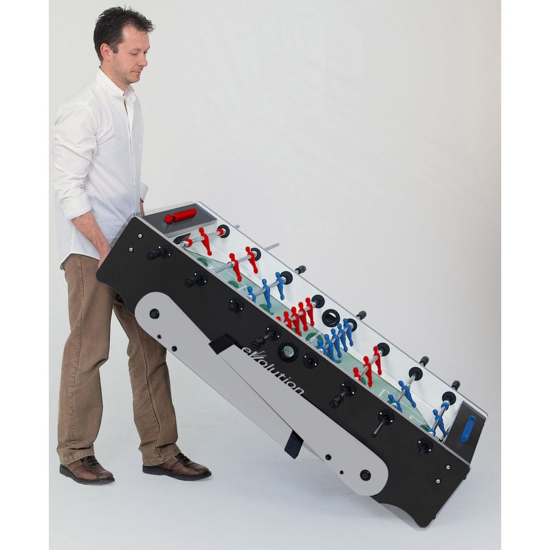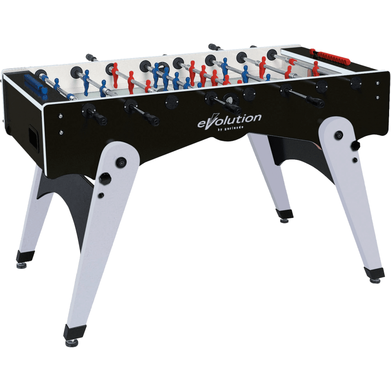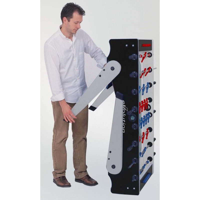 Настільний футбол Garlando Foldy Evolution Telescopic (FOLDYNERLVS) зі складаними ніжками для компактного зберігання - ідеальний варіант для невеликого приміщення. Міцна конструкція стола має елегантне поєднання чорного та сріблястого кольорів, натхненного стилем хай-тек. Модель виготовлена безпосередньо в Італії з високоякісних матеріалів, що забезпечують довговічність і задоволення від гри, з урахуванням конкретних вимог, яким повинен відповідати футбольний стіл. Цей стіл характеризується надійністю та стійкістю, що робить його придатним для гри в будь-якому місці: від дому до офісу та бару. Настільний футбол Garlando Foldy Evolution Telescopic (FOLDYNERLVS) відповідає європейським стандартам безпеки EN 71-1, 71-2, 71-3 та 71-9.