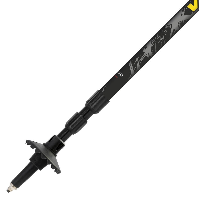 Твердосплавний наконечник гарантує надійне зчеплення з будь-яким типом рельєфу, а знімний гумовий ковпачок дозволяє безпечно використовувати палиці на твердих поверхнях, таких як асфальт або плитка.