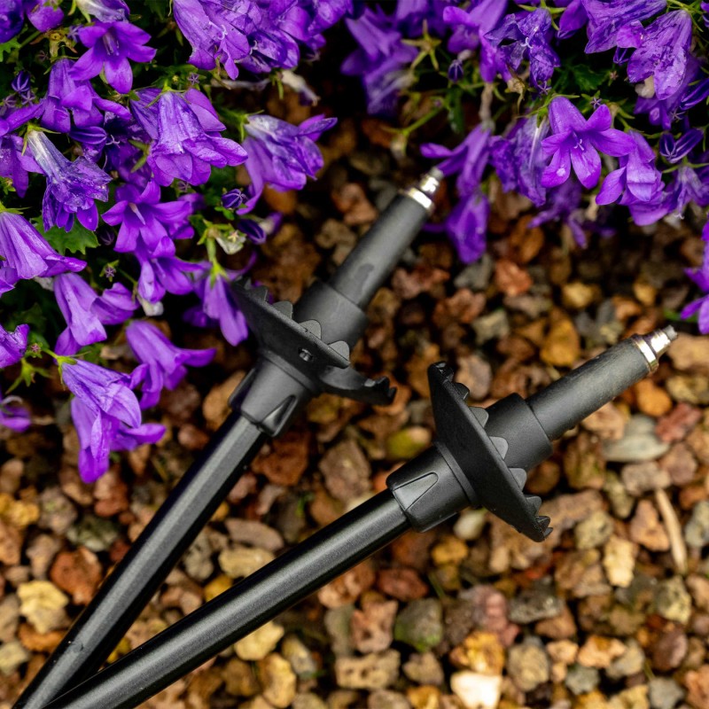 Твердосплавний наконечник гарантує надійне зчеплення з будь-яким типом рельєфу, а знімний гумовий ковпачок дозволяє безпечно використовувати палиці на твердих поверхнях, таких як асфальт або плитка.