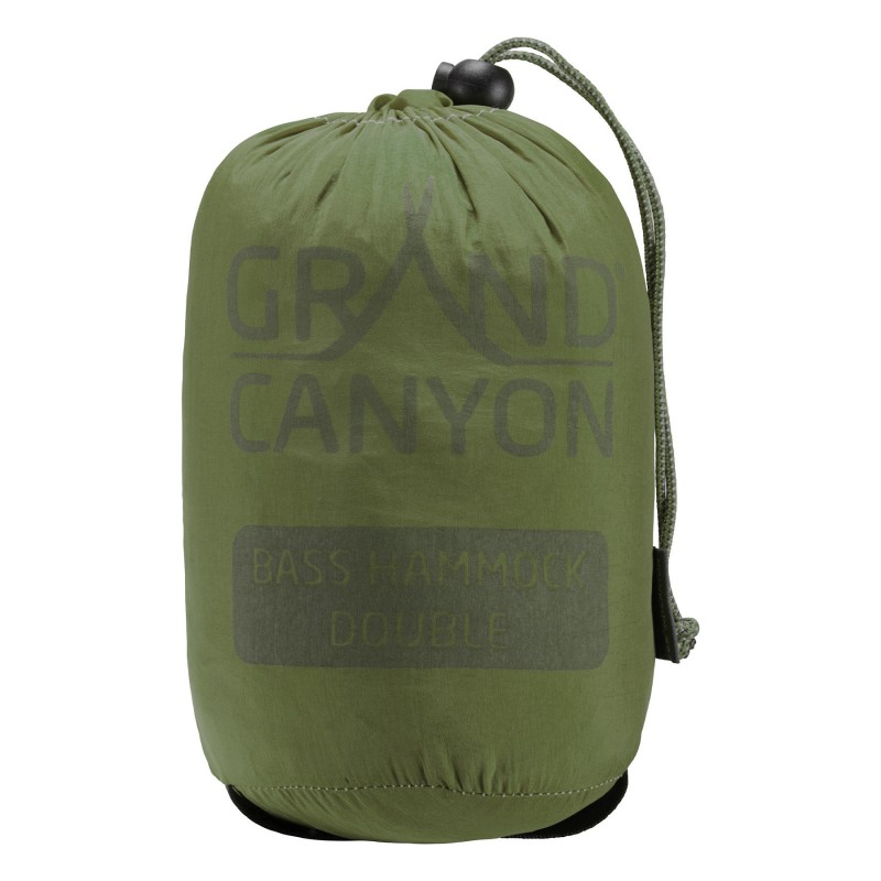 Чохол для зберігання прикріплений до самого гамака. Завдяки цьому він ніколи не загубиться, і в розкладеному стані виконує функцію кишені для речей. Комплектація гамака Grand Canyon Bass Hammock включає 2 ремені довжиною 2.5 м з широкими накладками, для захисту кори дерева від пошкоджень, і 2 карабіна. Це забезпечує легку і безпечну установку гамака між деревами або іншими підходящими опорами.