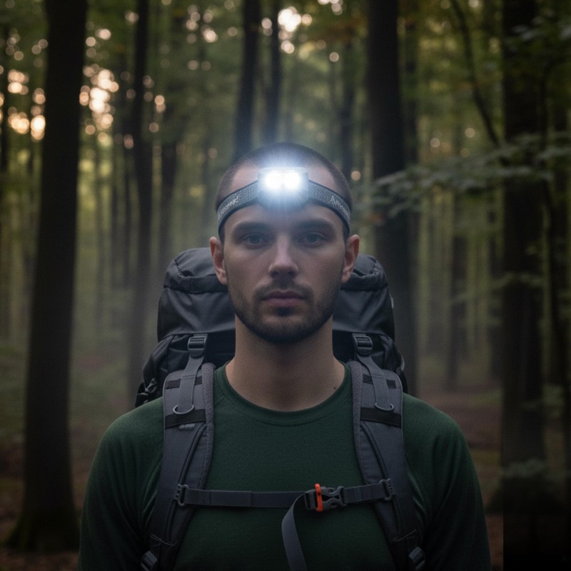 Ліхтар укомплектований еластичним регульованим ременем із силіконовим покриттям з внутрішньої сторони (максимальна довжина 65 см), зарядним кабелем USB-C та акумулятором 3,7V 1250 mAh Li-Polymer.