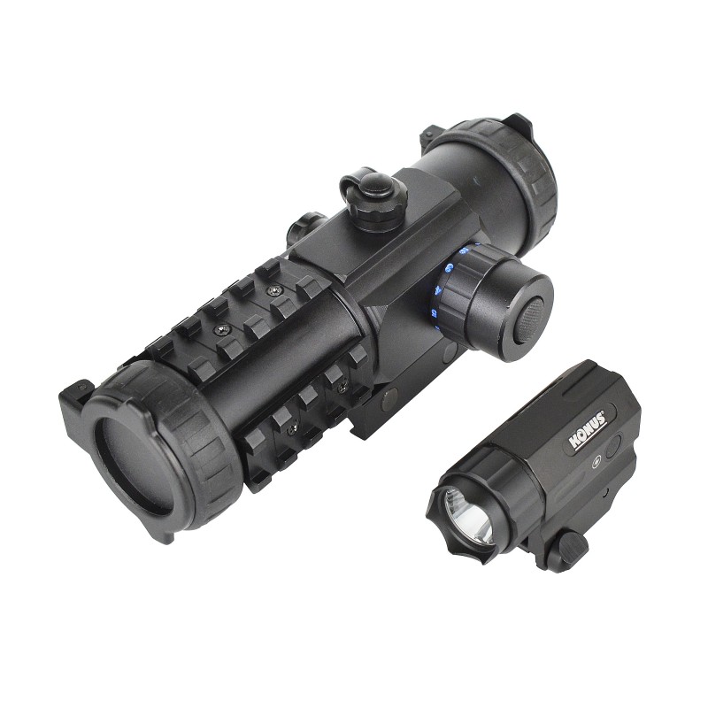 KONUS KONUSLIGHT-TL (3940) - легкий та компактний ліхтар для кріплення на різні види вогнепальної та пневматичної зброї. Пристрій кріпиться на збройні планки Weaver/Picatinny за допомогою швидкознімного кріплення, що не вимагає додаткового інструменту. Як джерело світла використовується енергоефективний діод CREE-XPG-2 яскравістю в 360 Люмен. Світловий потік з яскравою центральною плямою на тлі зовнішнього засвічення.