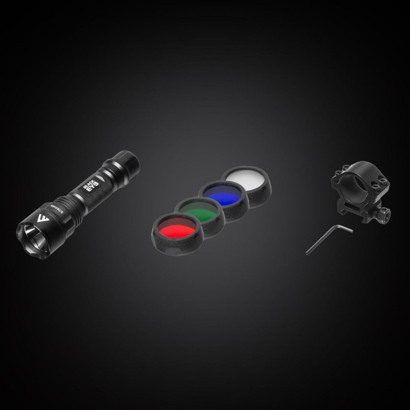 У комплекті передбачені кольорові фільтри (червоний, зелений, синій) для спеціалізованих завдань: червоний допомагає зберегти нічний зір, зелений оптимізує видимість при використанні оптичних прицілів, а синій підвищує контрастність для пошуку слідів чи деталей рельєфу.