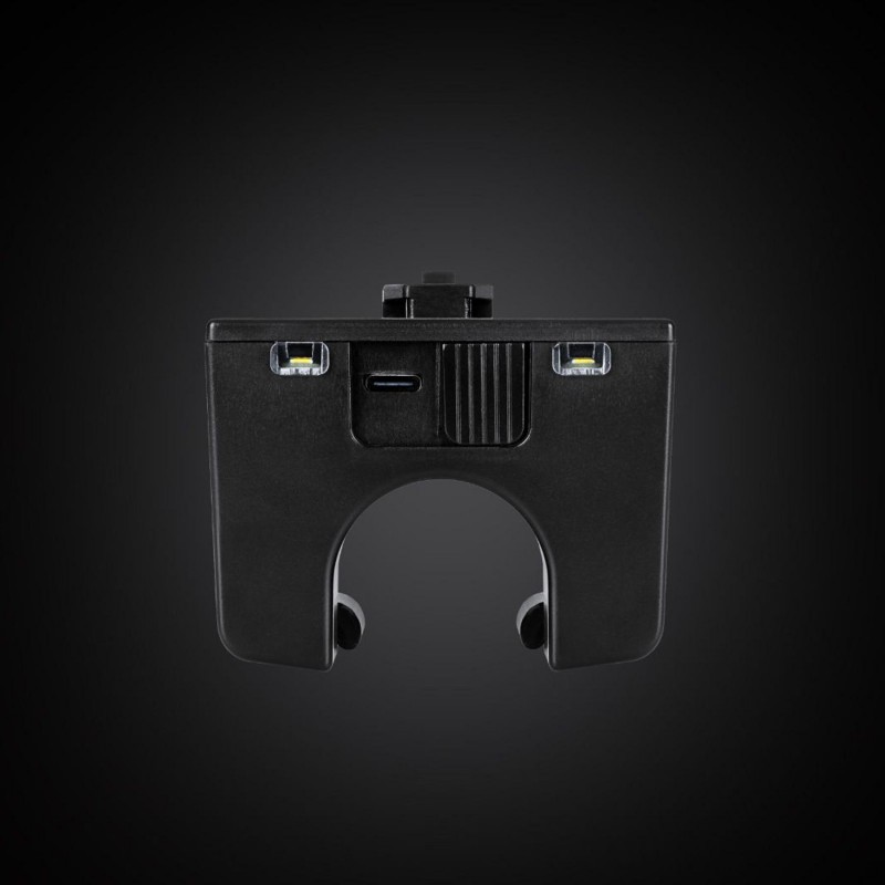 Ліхтар заряджається за допомогою док-станції від мережі 220V, автомобільної розетки 12V та кабелем USB-C (5V, 2A) всього за 4.5 годин. Док-станція має світлодіодний індикатор вимкнення живлення, що дозволяє легко знайти ліхтар у разі блекауту.