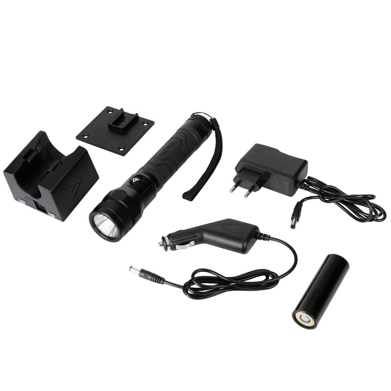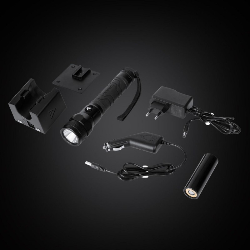 Жимиться ліхтар від акумулятора Li-Ion 5000 mAh, що забезпечує до 11 годин безперервної роботи у мінімальному режимі чи 2,5 години в режимі HIGH. Таке рішення ідеальне для служб, що працюють позмінно — достатньо просто поставити ліхтар на базу, і він буде готовий до наступного виїзду.