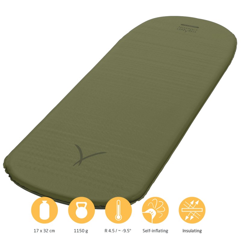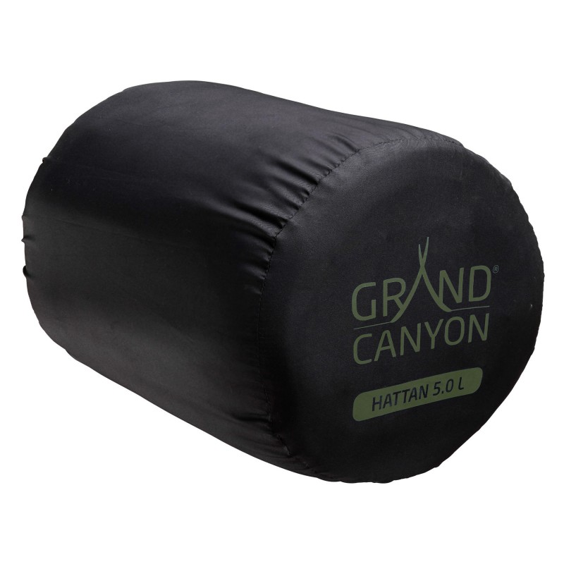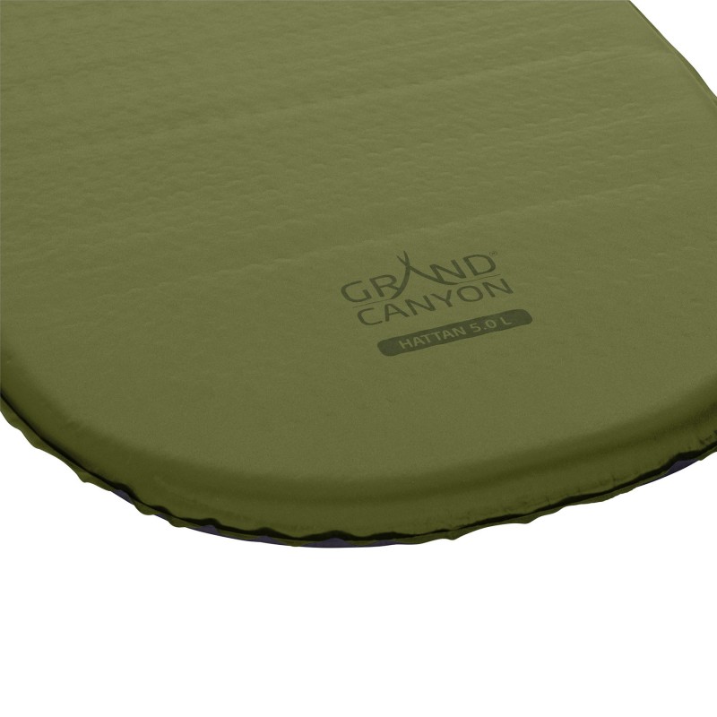 Самонадувний килимок Grand Canyon Hattan 5.0 L - це подовжена версія, що дозволяє комфортно розмістить користувачам із зростом до 2 метрів, та забезпечує належні термоізоляційні властивості при температурі до -9.5°С. При цьому модель є досить компактною та легкою, як для самонадувного килимка. Верхня оболонка Hattan 5.0 L має м’яку на дотик текстильну поверхню, нижня сторона мінімізує ковзання на гладкій підлозі намету. Простий у використанні гвинтовий клапан забезпечує швидке самонадування та дає можливість подальшого надування та швидкого здування після використання.